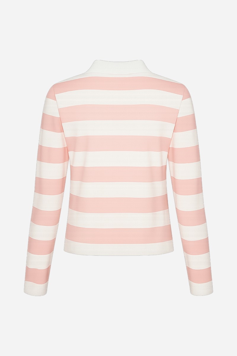 En fin långärmad pikétröja för tjejer med rosa och vita ränder som ger en fräsch och sportig look. Den mjuka kvaliteten och den klassiska pikékragen gör den både bekväm och enkel att styla för vardagsbruk. En söt och snygg baströja som passar perfekt in i varje tjejs garderob.