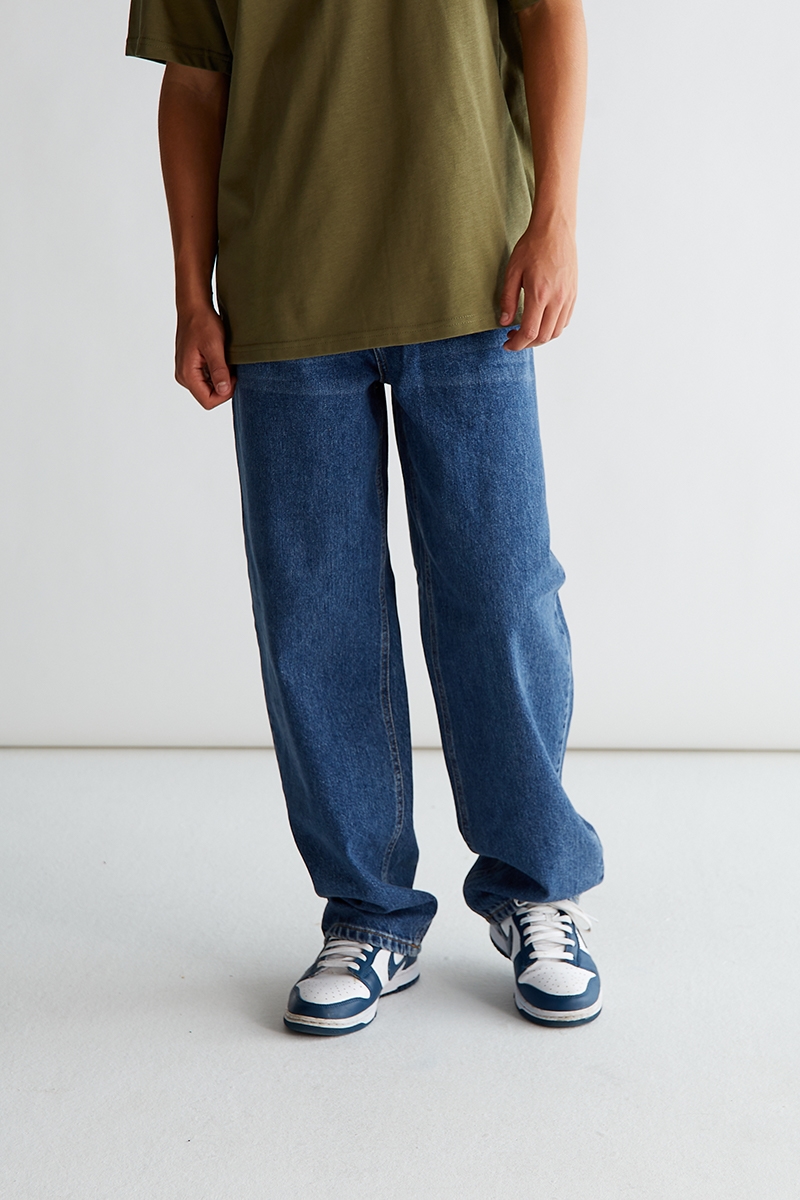 Vilt coola jeans i blå denim. Jeansen har en oversized passform och har fem fickor - tre fickor fram och två bakfickor. Styla med en cool hoodie och ett par coola sneakers.