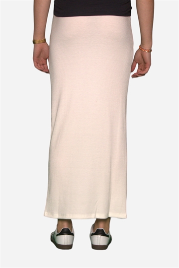 Riktigt snygg ribbad kjol från Grunt . Kjolen kommer här i en snygg vit med slits på ena sidan. Kjolen är väldigt stretchig och lång i modellen.