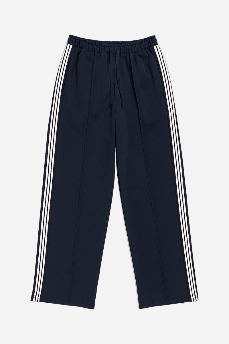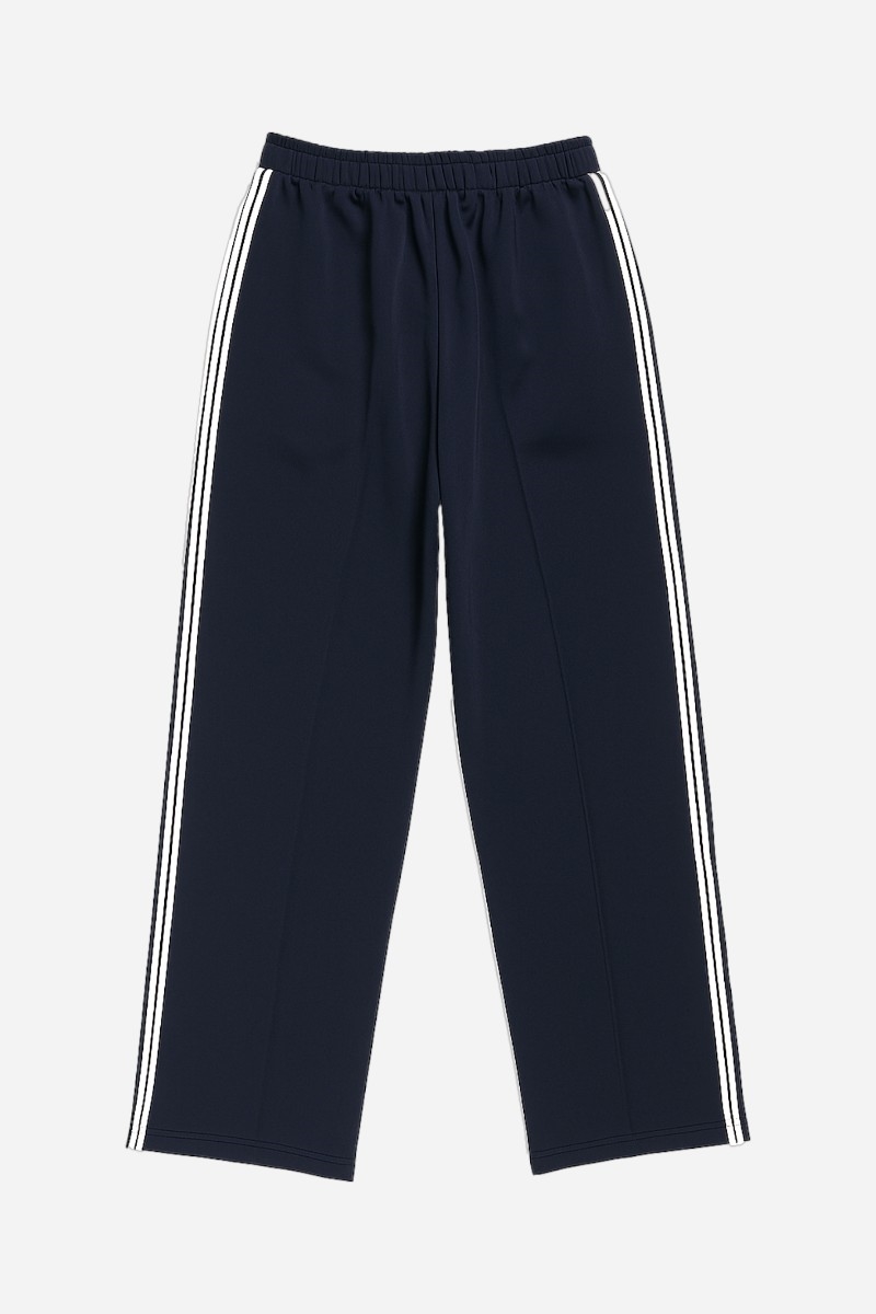 Sportiga och bekväma mjukisbyxor för tjejer i en vacker marinblå färg med två klassiska vita ränder längs sidorna. De vida benen och den resåriga midjan ger en avslappnad och bekväm passform, perfekt för både vardag och fritid. Snygga och tidlösa sportbyxor som passar till det mesta.