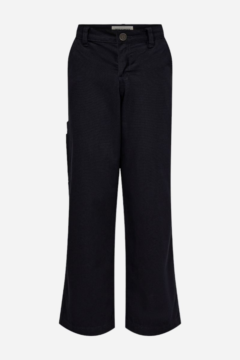 Vackra byxor från Sofie Schnoor . Byxorna kommer här i mörkblått. Byxorna är lösa i modellen. De stängs i midjan med knapp och dragkedja. Styla den med den matchande jackan!