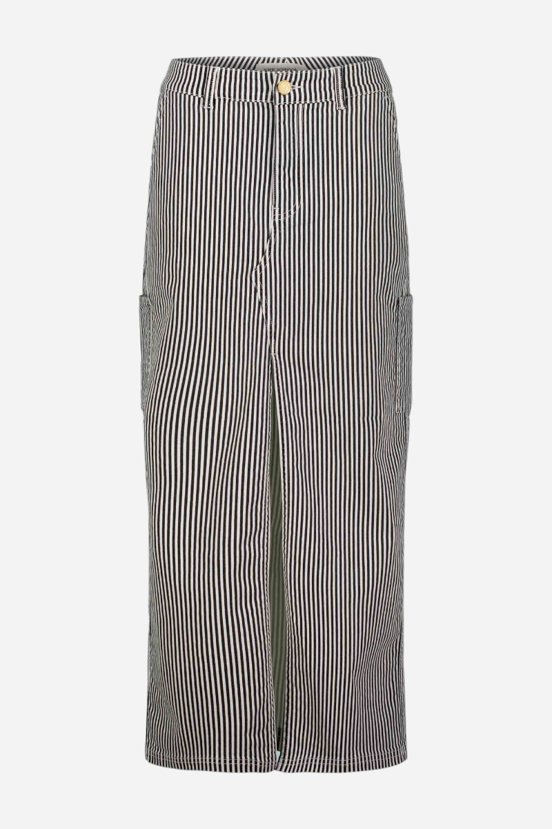 Superfin kjol från Sofie Schnoor . Kjolen är lång i modellen och kommer här i svarta och vita ränder.