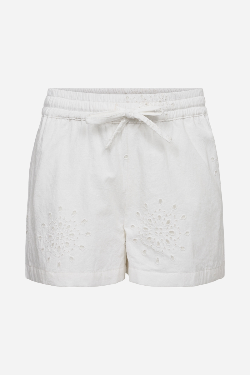 Superfina broderiga anglaise shorts från Sofie Schnoor . Shortsen kommer här i vitt. I midjan finns en resårkant och har knytband. Style dem med den söta matchande toppen