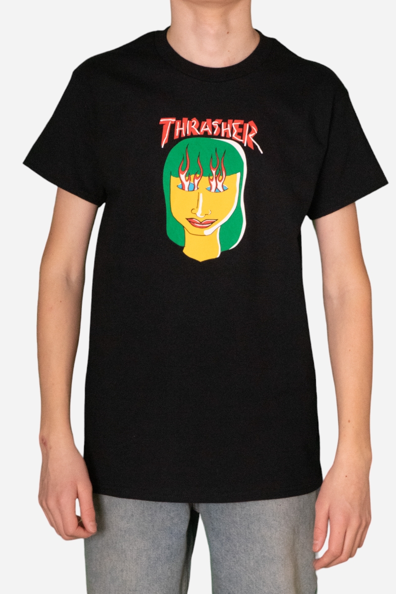Supersnygg t-shirt från Thrasher . T-shirten kommer här i svart och har ett supercoolt tryck framtill, samt Thrasher skrivet ovanför trycket.